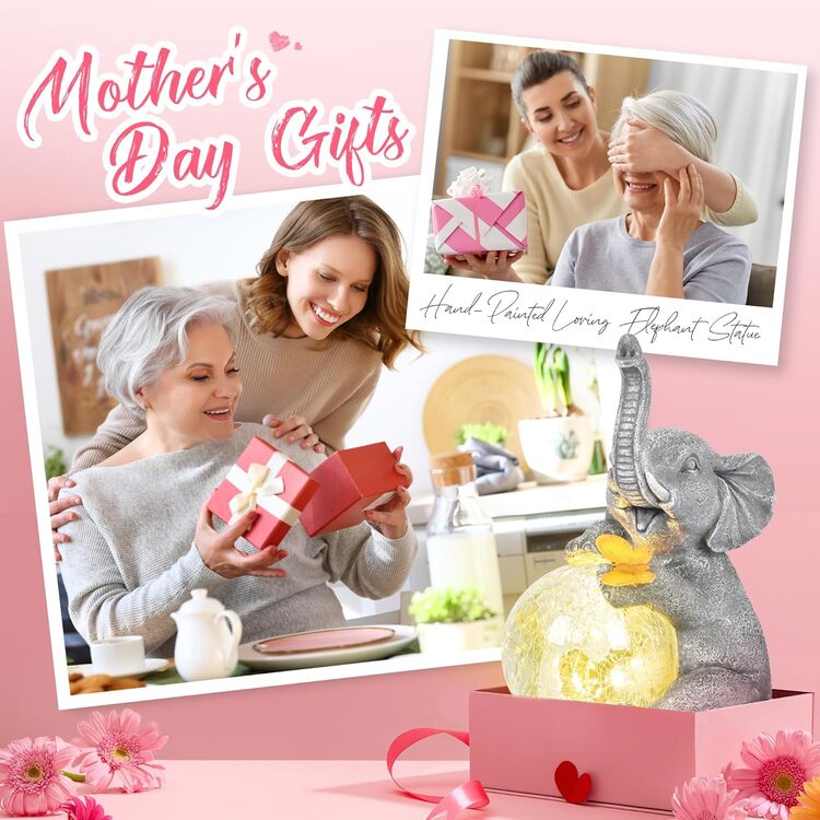 Gigalumi Outdoor Solar Elephant Garden Statue Decor with Glass Globe Light(1 Pack)
