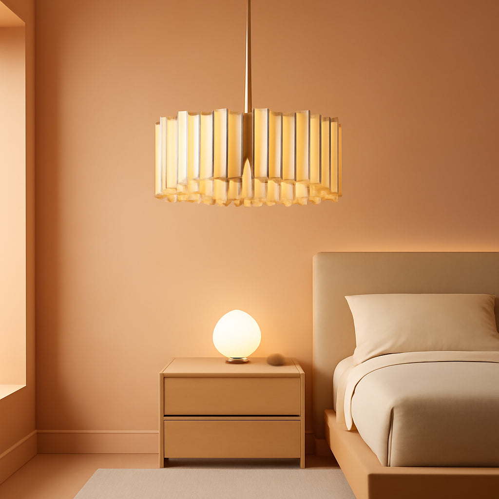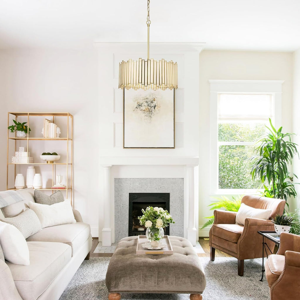 This chandelier isn’t just a light—it’s a handcrafted design moment. The combination of white glass and brushed gold edge catches the eye, while the drum silhouette provides a timeless silhouette that complements both contemporary and traditional interiors. Create inviting dinners, casual conversations, and cozy evenings under a glow that feels curated, welcoming, and uniquely yours.