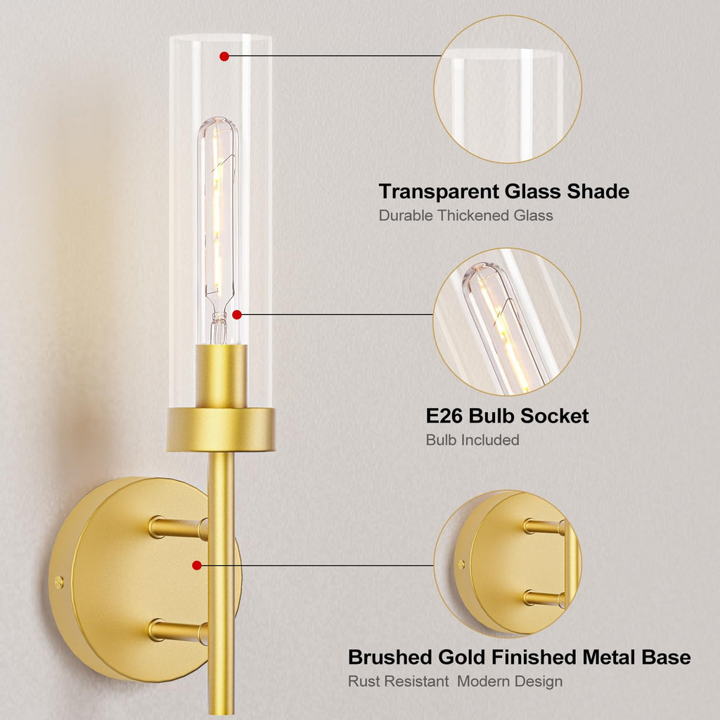 • 【Superior Quality】These black and gold finish sconces wall decor set of 2 are made of high-quality steel and aluminum, not easy to rust and fade, and have strong corrosion resistance. perfect for damp spaces. The thick clear glass shade is used, which is not easy to break and has strong light transmittance, illuminating various spaces in your house.
