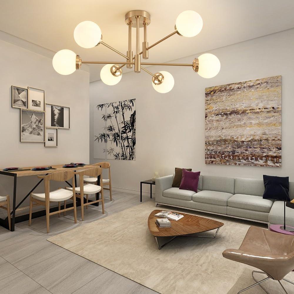 Elevate dining and living spaces with a Gold Sputnik Chandelier featuring a glass globe shade—a fusion of mid-century glamour and modern practicality.