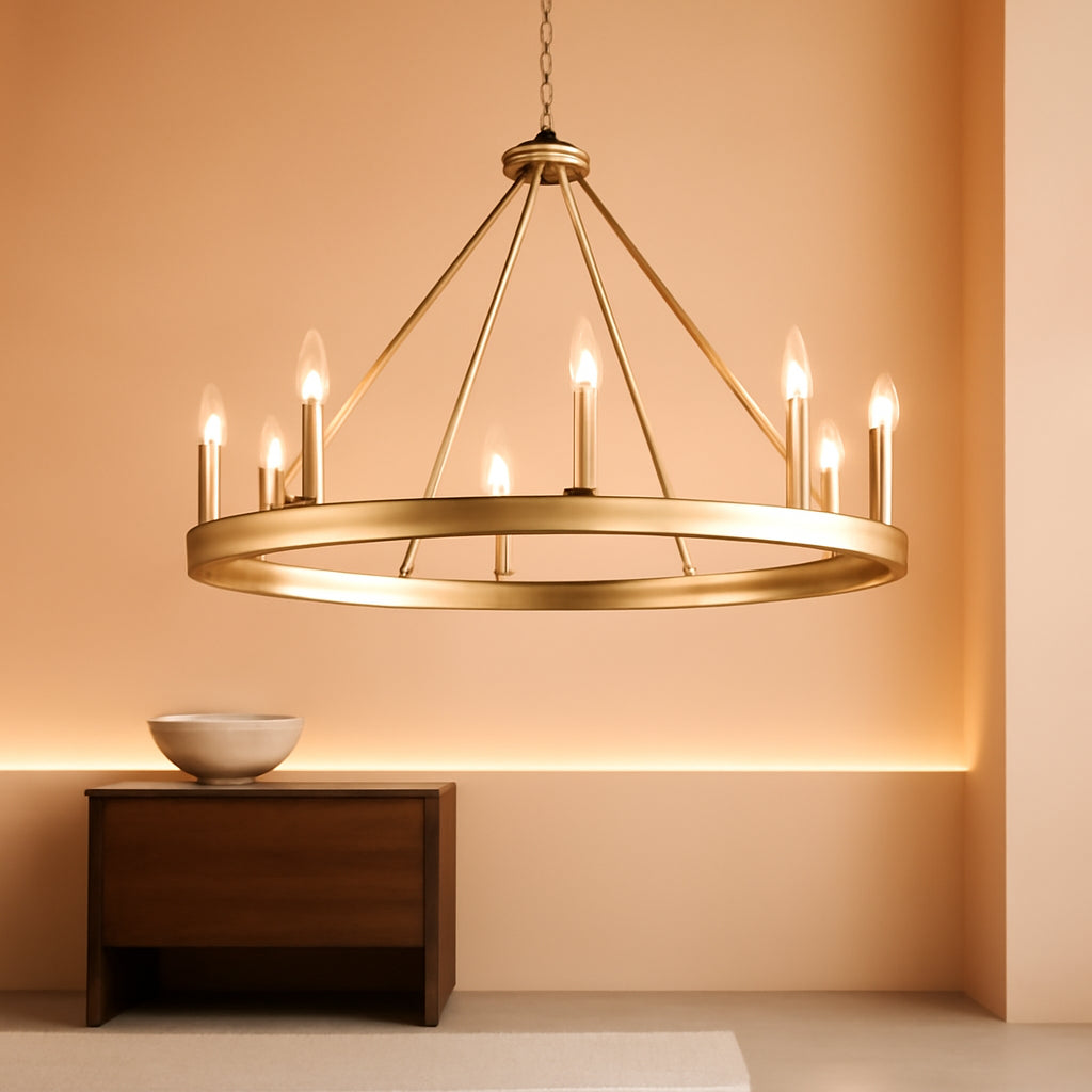 Why this chandelier stands apart — its generous scale and timeless gold wagon wheel design create a luxurious focal point that elevates any space. The open, airy frame blends with a range of décor—from rustic farmhouse to modern glam—while delivering reliable brightness and a welcoming atmosphere that guests notice immediately.