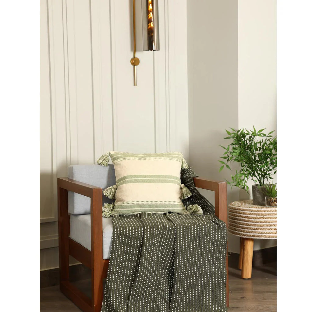 Bring a touch of nature indoors with this charming Green Striped Cushion Cover.
