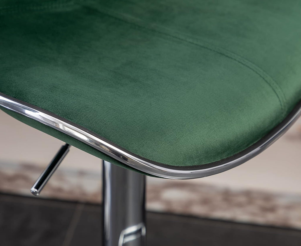 Elevate your entertaining with Masaccio Velvet Upholstered Adjustable Swivel Barstools — a green, two-pack that blends luxurious comfort with modern style. These barstools pair plush velvet seating with a nimble 360° swivel and a smooth air-lift height adjuster, making every seating moment feel premium.