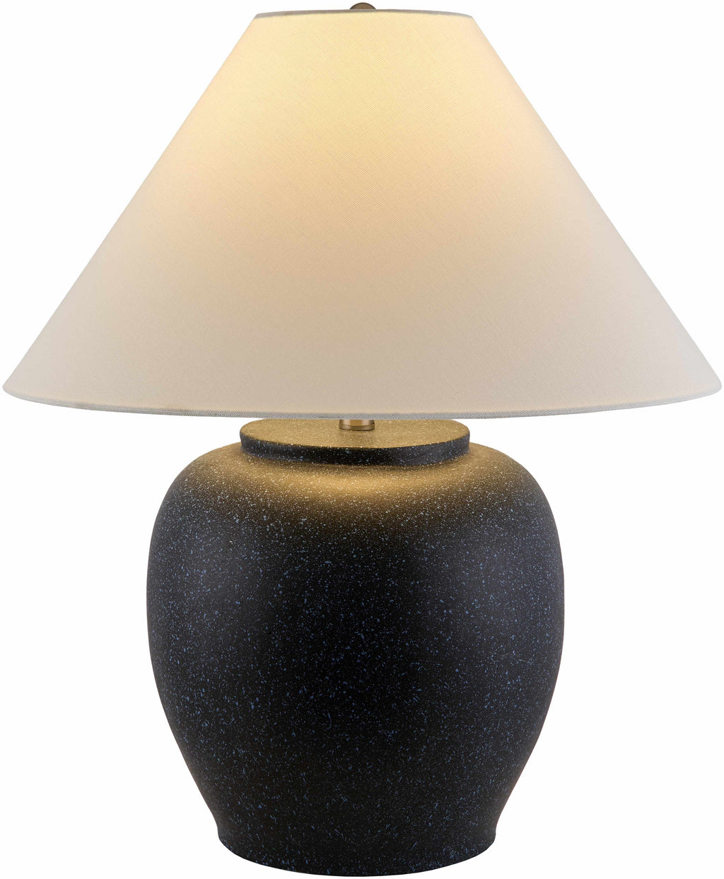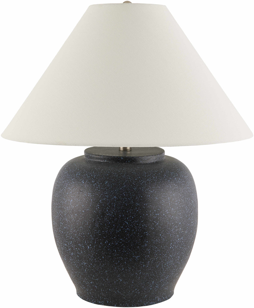 Material: Body: Cement / Shade (Outside): Linen / Shade (Inside): Metal / Finial: Iron |