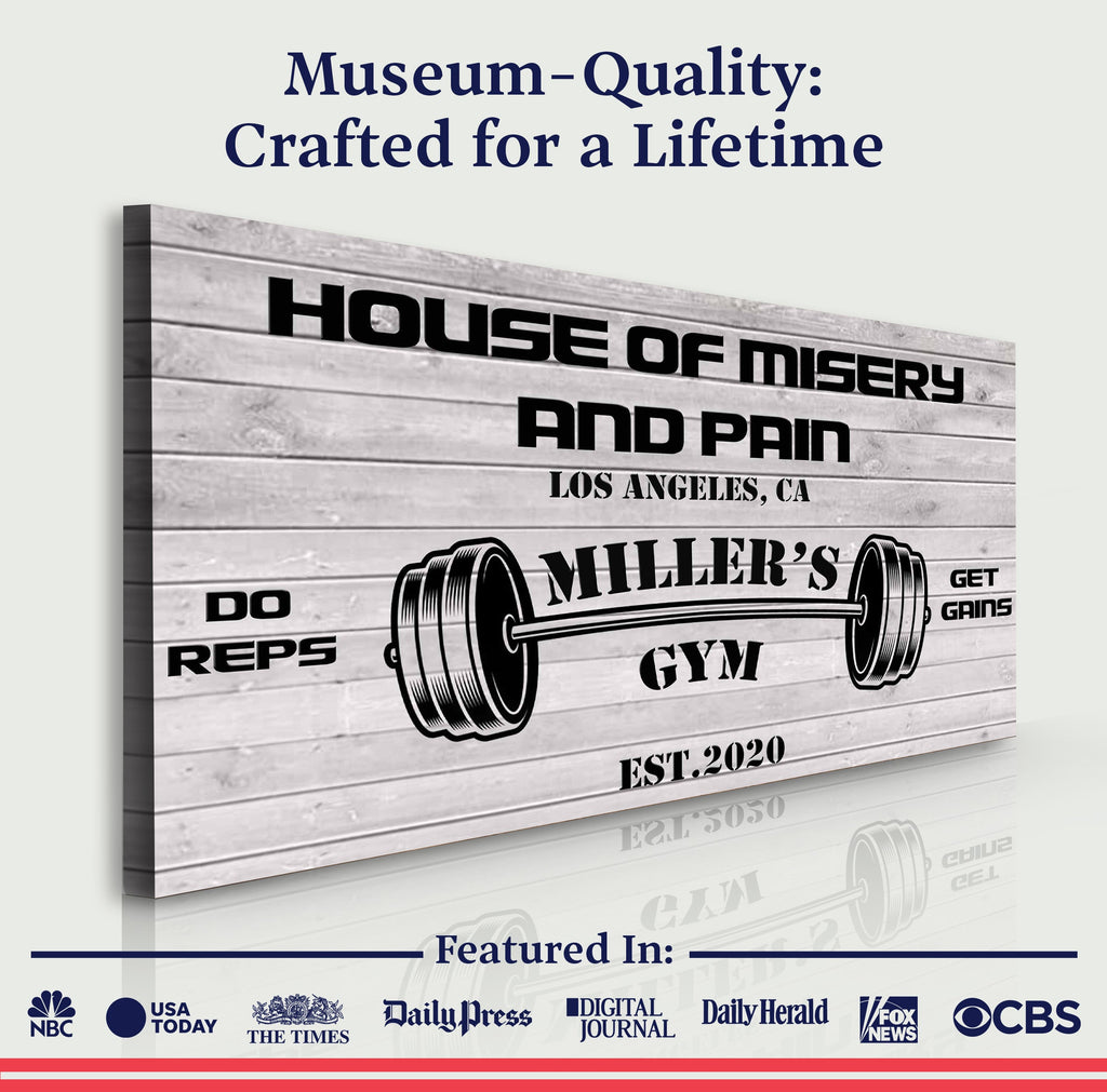 A gym sign is a great way to remind yourself to train harder and stay motivated when working the bars through pain and sweat. It can be a simple, one-line message or a more elaborate design. Gym signs are usually made of durable materials like our high quality canvas, so they can withstand the rigors of an intense workout.