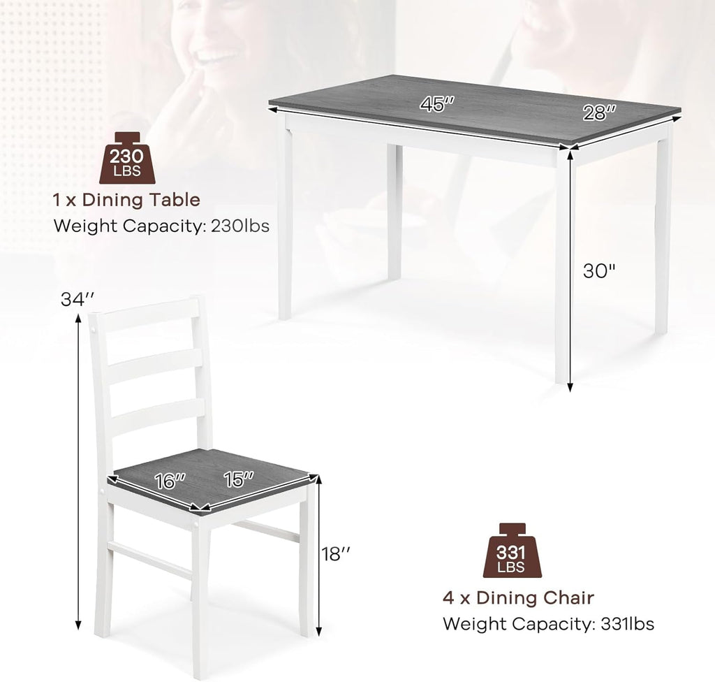 Durable solid wood construction stands up to daily use, while protective feet pads on the rubberwood legs guard floors and keep noise to a minimum. This kitchen table and chairs for 4 is designed to endure decades of meals and conversations.