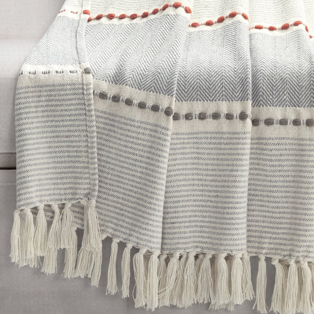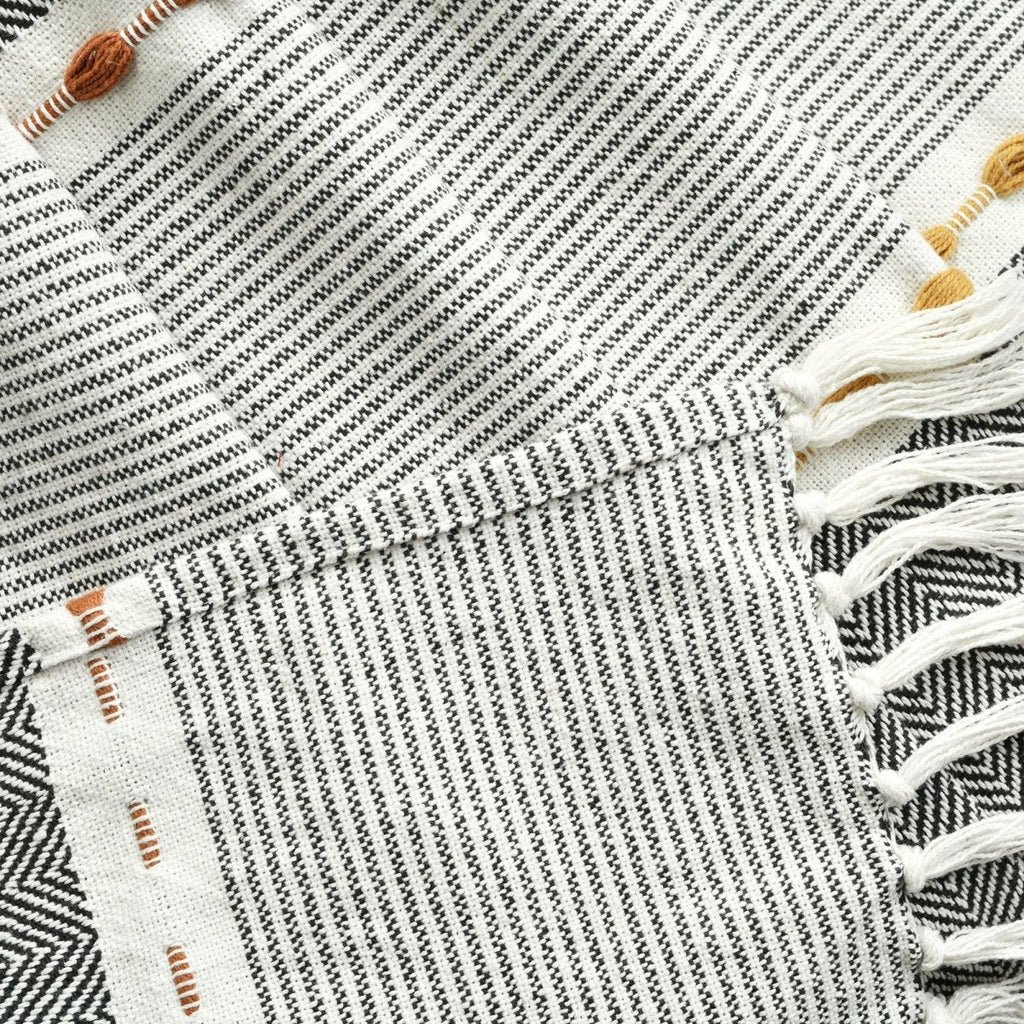 Add a simple style to your home with this cozy Herringbone Stripe Yarn Dyed Cotton Woven Tassel Throw. The stripe design matches many different interior design styles like boho and hygge. This throw is made of yarn dyed woven cotton for your comfort. The tassel fringe detail?ágives this blanket a hit of extra style.