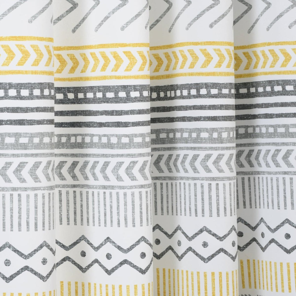 Printed on light blocking fabric, these panels help to filter out light and heat. While not full blackout, this Hygge Geo Light Filtering Window Curtain Panel Set will effectively reduce much of the light, heat and sound coming in from outside and provide plenty of privacy from onlookers.