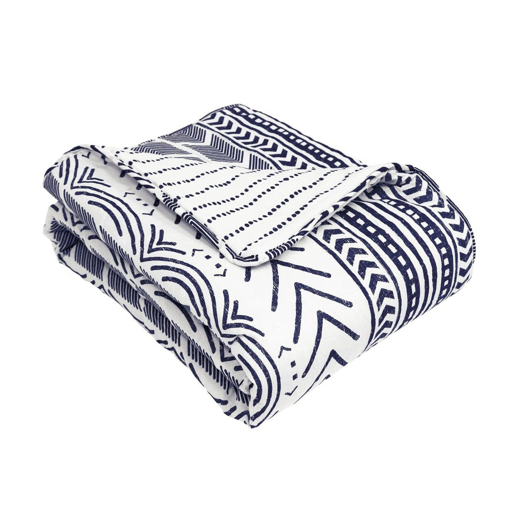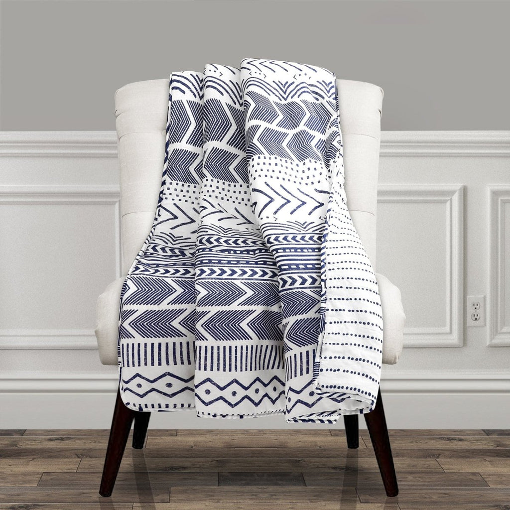 This reversible throw blanket is lightweight and is perfect for those who love Scandinavian style and design. The front of the Hygge Geo Throw features stripes of various geometric patterns printed on 100% cotton.