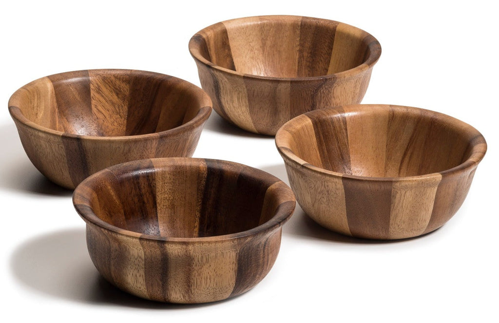 Kalmar Home's exquisite set of 4 Individual Acacia Wood Salad Bowls designed to perfectly complement our larger serving bowl.