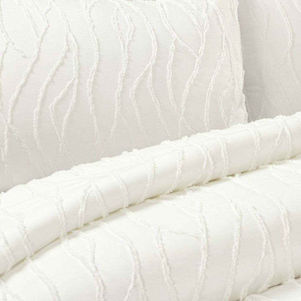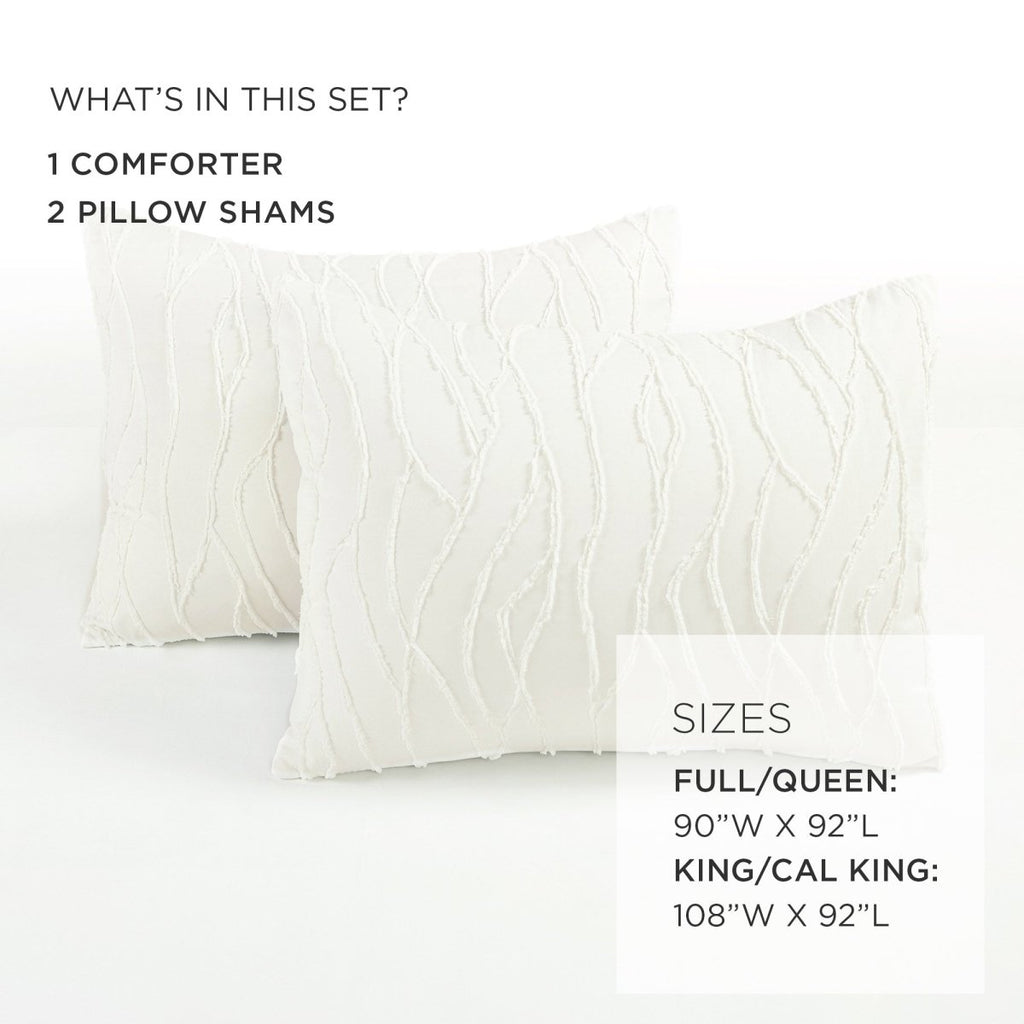 Decorate your primary or guest bedroom with this unique off-white comforter set. The texture from the jacquard pattern brings a relaxed, classic style to your space. Layer with your favorite blankets or pillows for a complete look. This Jacquard Wave 3 Piece Comforter Set includes 1 comforter and 2 standard pillow shams.