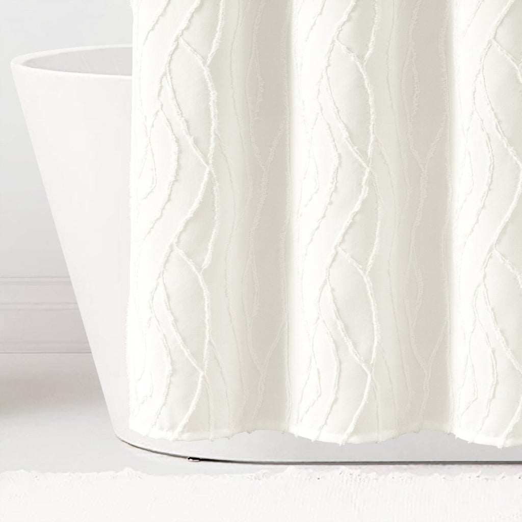 Add dimension to your primary or guest bathroom with this unique Jacquard Wave Shower Curtain, bringing a light and relaxing style to your space. The solid off-white color and textured design makes it easy to style with your existing decor.
