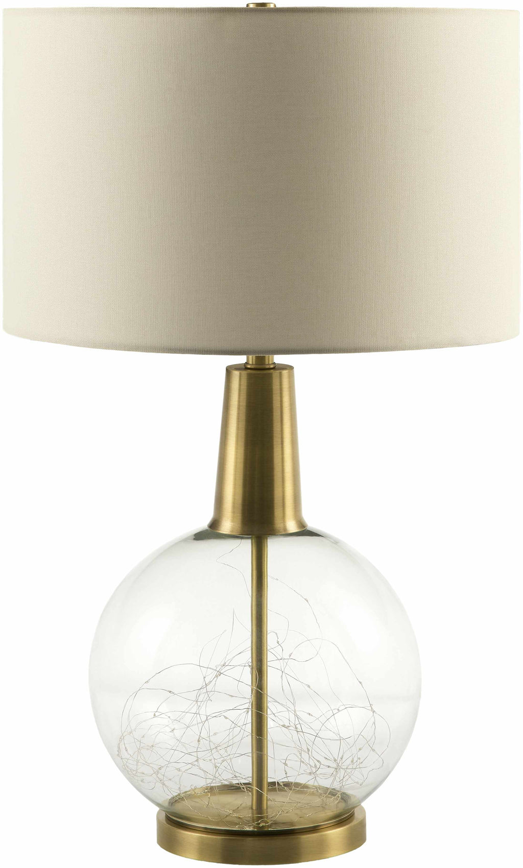 Material: Body: Glass, Iron / Base: Iron / Shade (Outside): Linen / Shade (Inside): Polyester / Finial: Iron |
