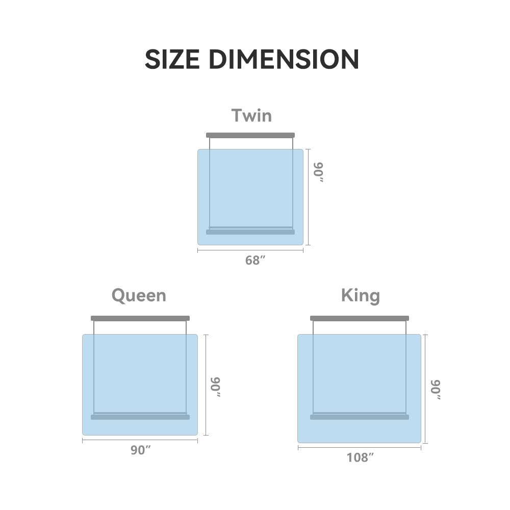 - Available sizes & colors: Twin, Queen, and King sizes are available, with five color options: blue, ivory, light green, light grey, and pink.