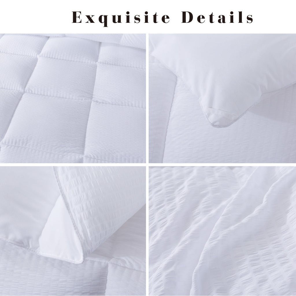 - PREMIUM WHITE DOWN SOFTNESS: The ultra-soft filling, fluffy and exquisite detailed fabric makes this comforter extremely comfortable, perfect for the cold nights. The premium brushed microfiber and four-hole high hydrophilic fiber filling technology traps the air and locks-in the warmth. OEKO-TEX Standard 100. *Each item is vacuum packed which may give an impression the item is flat. Please fluff the item once opened and allow 24-48 hours for maximum fluff.*