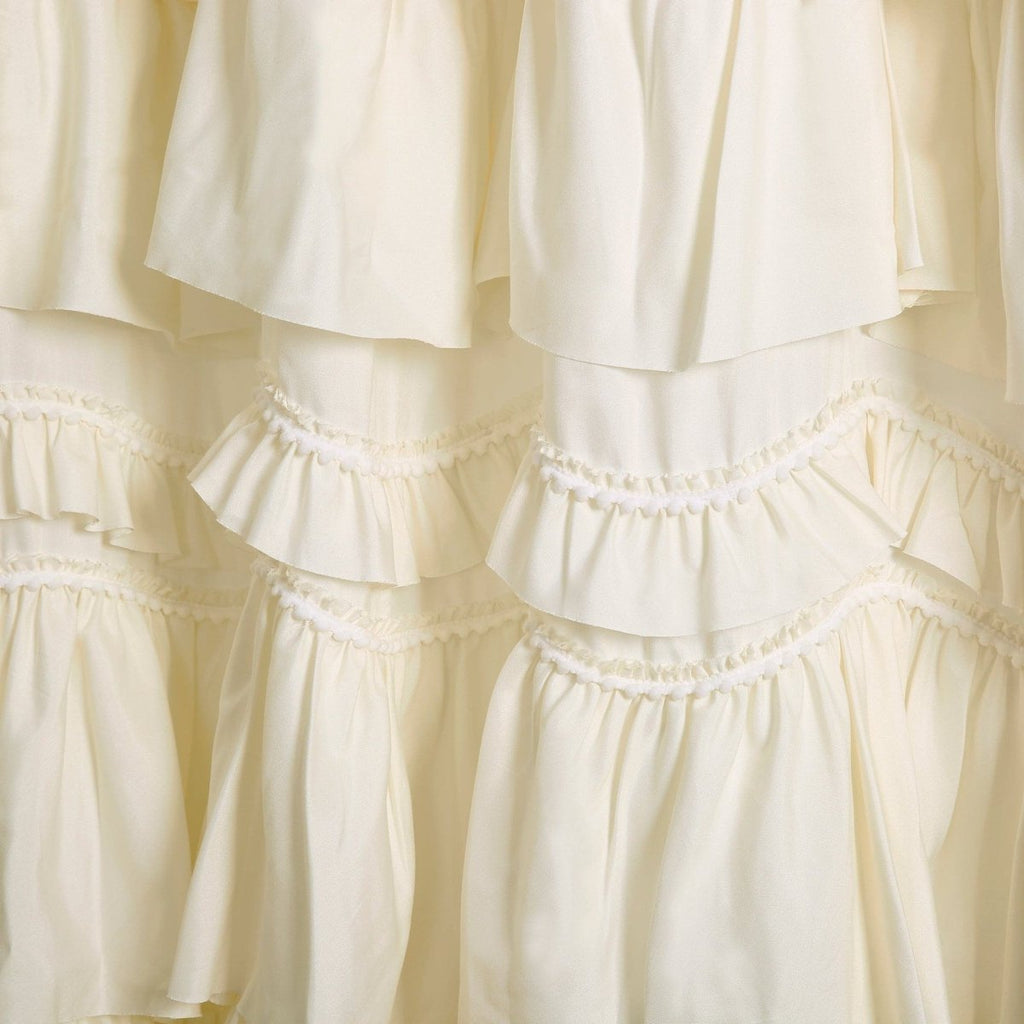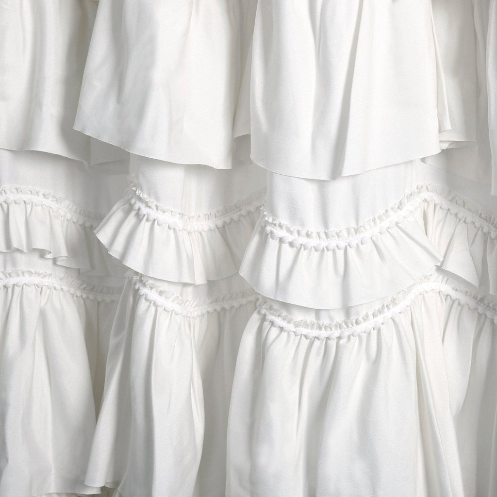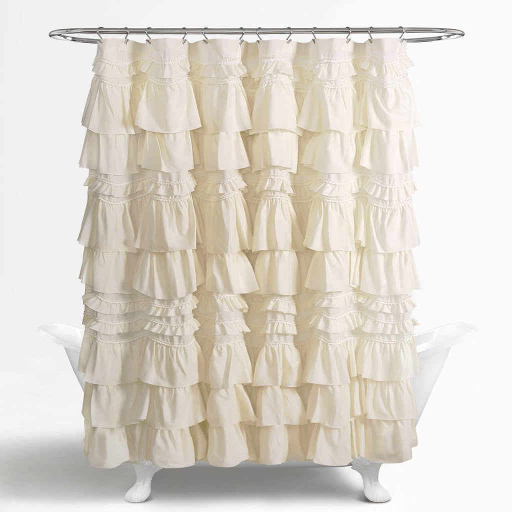 This Kemmy Shower Curtain is the epitome of every aspect needed in the home of a woman: class, style, fun and beauty all in one. The allure is enhanced with elegantly layered ruffles, further decorated with 3-D pom poms, adding lovely texture to your bathroom.