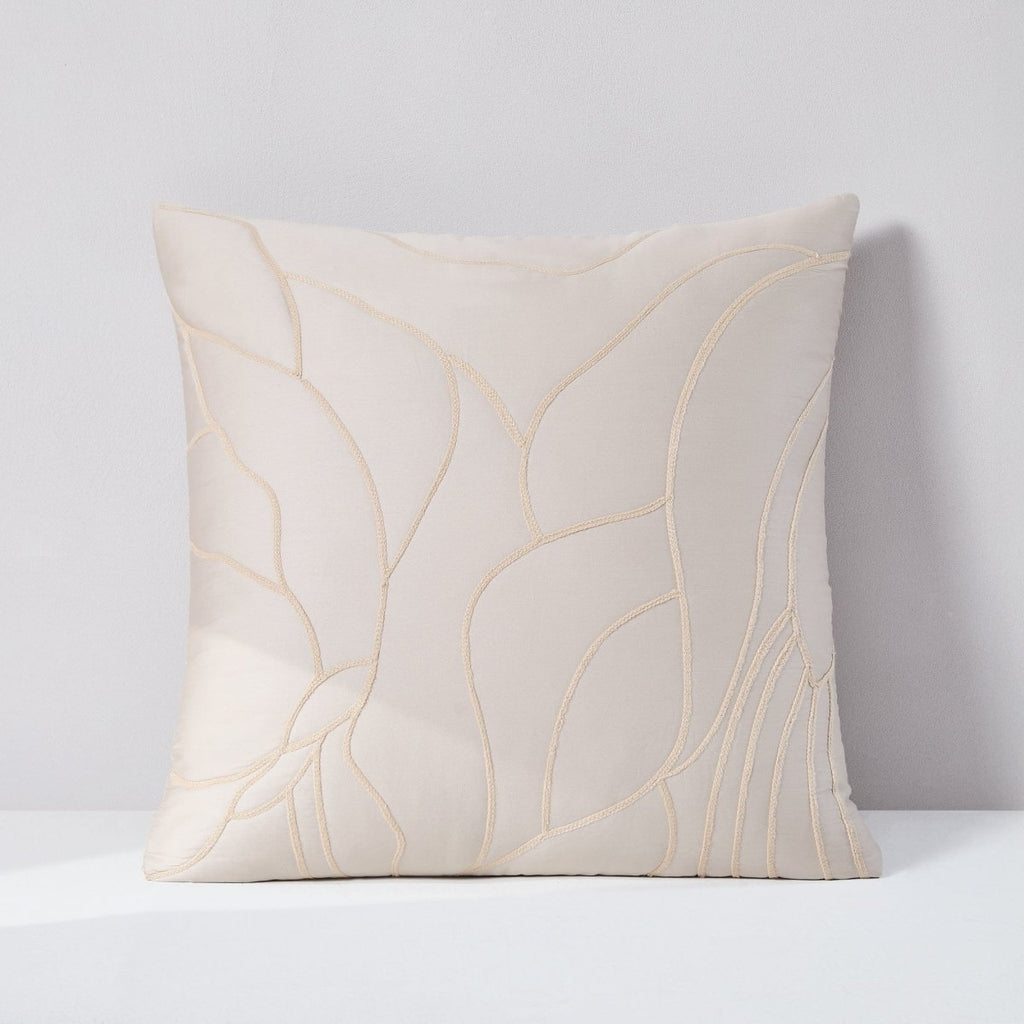 Bring subtle artistry to your space with the Kinoko Decorative Pillow Cover. Crafted from lustrous cotton and embroidered with shimmering metallic threads, its flowing lines create a quilted, textural effect that feels both modern and timeless. A sculptural accent for your bed, sofa, or chair, this pillow cover balances softness and durability with a refined finish.