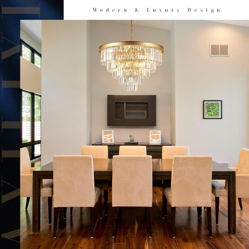 Make a bold first impression with a 30-inch, five-tier crystal chandelier that transforms entryways, dining rooms, and living spaces into a sanctuary of light, luxury, and modern refinement.