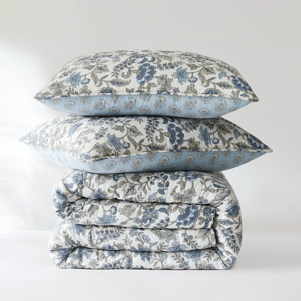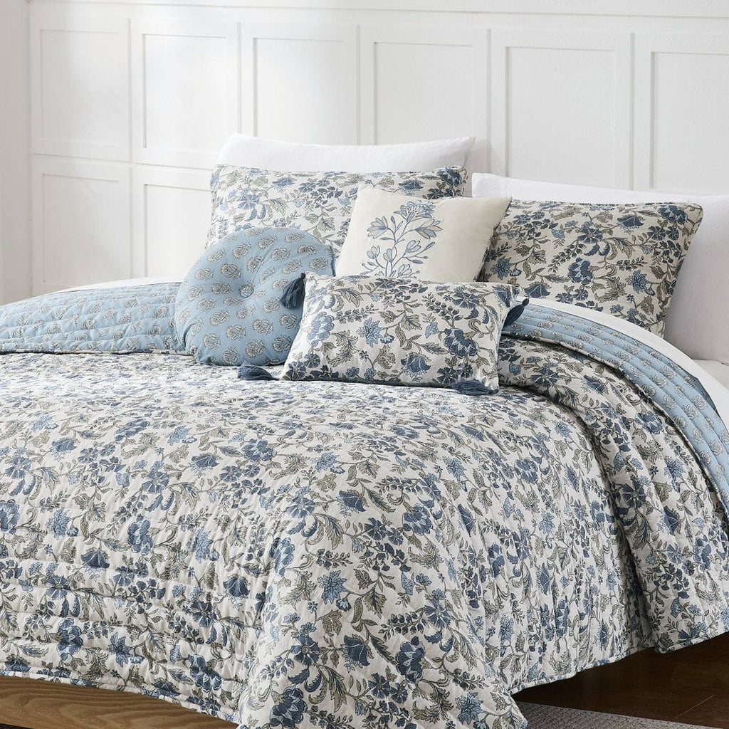Infuse classic charm into your space with this block print quilt set. This fully reversible set adorns classic florals, with a coordinating block print on the reverse, complementing vintage or cottage decor. Crafted from a soft microfiber with a lightweight polyfill. Fully styled, this 6 piece set comes with 1 quilt, 2 shams, and 3 decorative throw pillows. STANDARD 100 by OEKO-TEX® certified, all components have been tested and certified free from harmful substances. Machine washable.