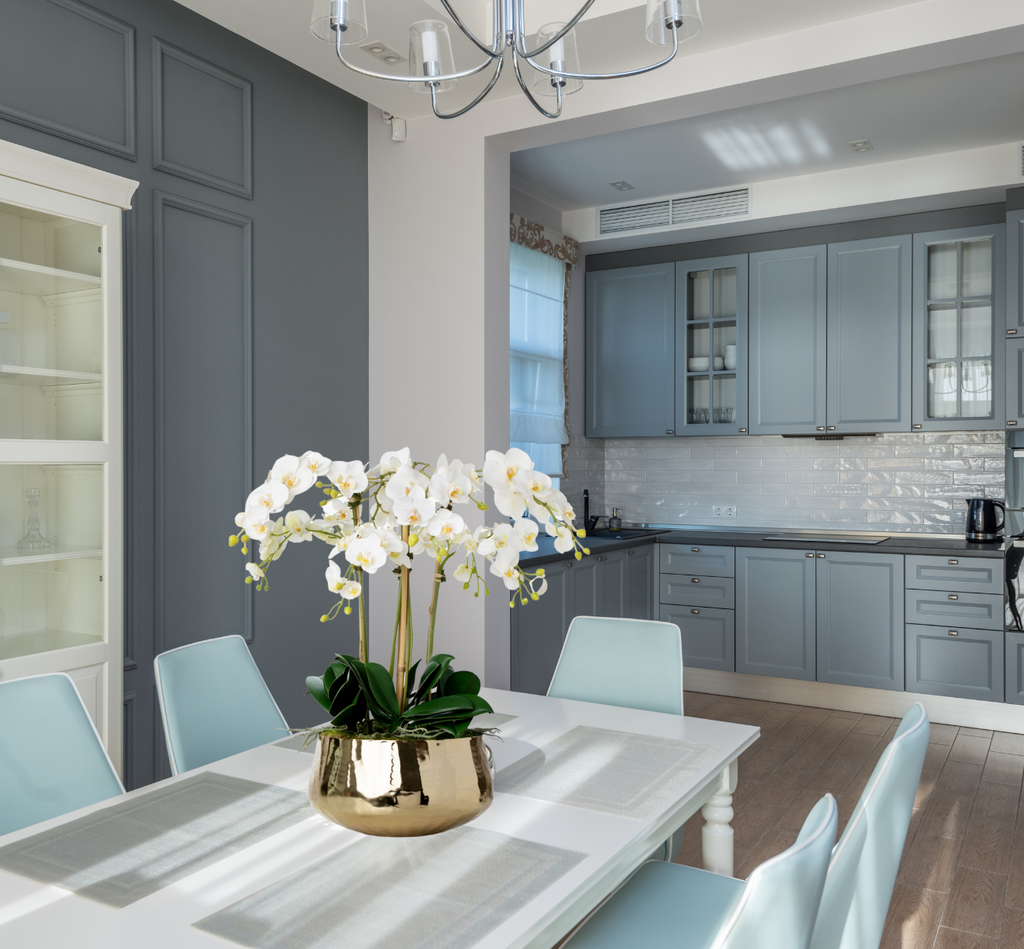 This luxury faux orchid arrangement flaunts beautiful white silk orchids in a gorgeous gold planter, the perfect standout arrangement for your dining room table or grand entryway. This beauty will elevate your home and always be ready to show off.