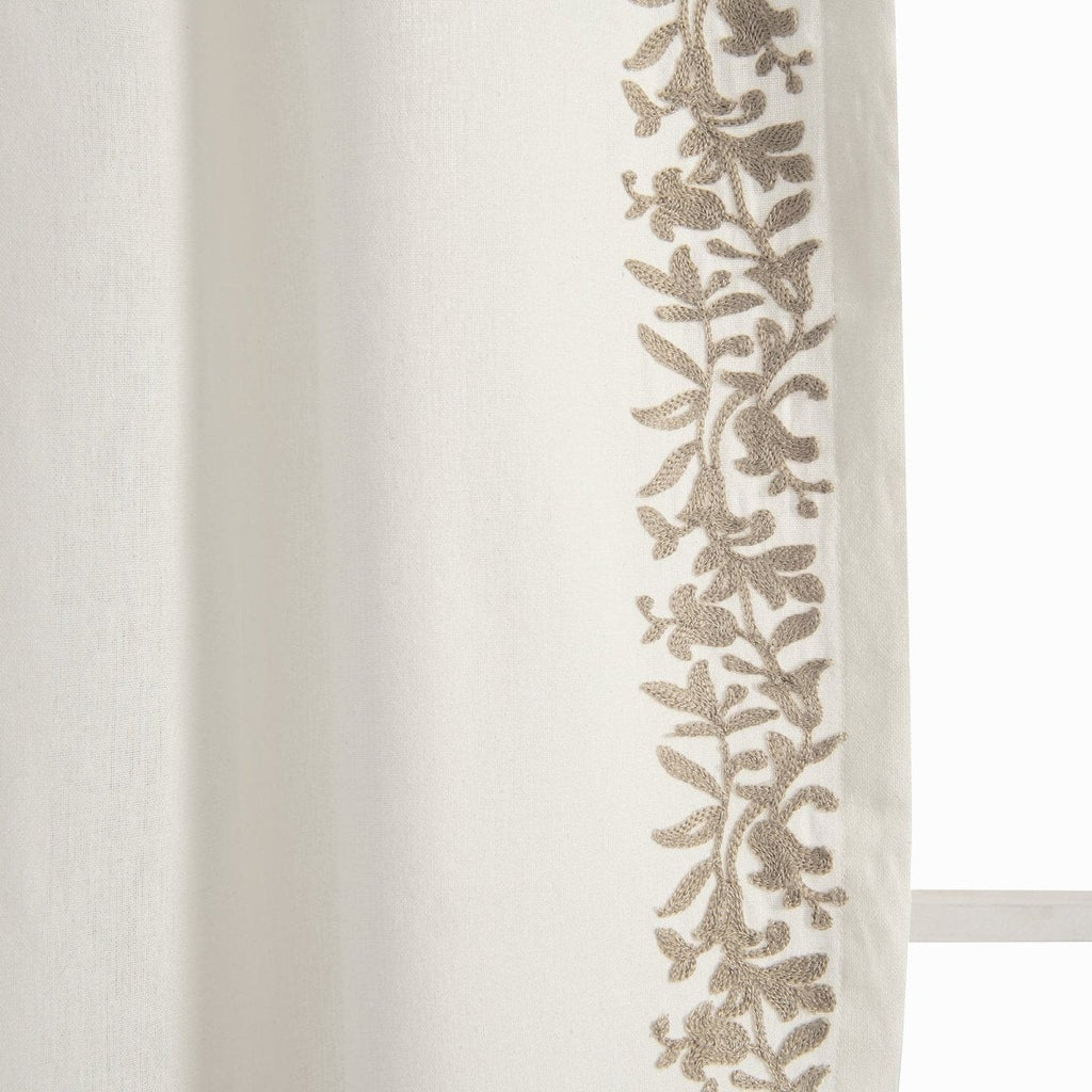Slight weave variations are authentic to this natural fiber blend and create a one-of-a-kind look. The floral embroidery along the edge gives these panels extra pizzazz. This Luxury Modern Flower Linen Like Embroidery Border Window Curtain Panel will let in plenty of natural light while providing the privacy you need from neighbors and other outsiders.