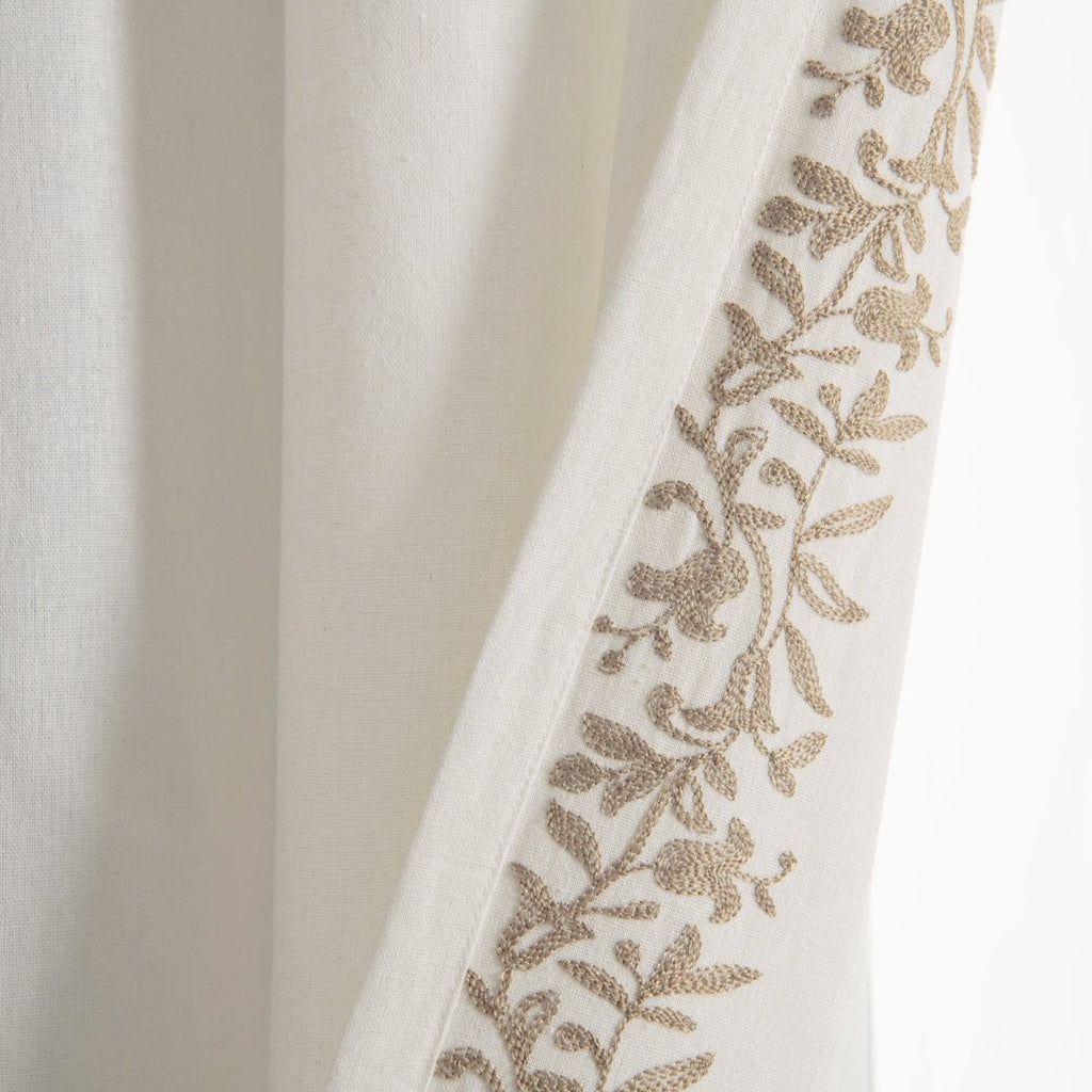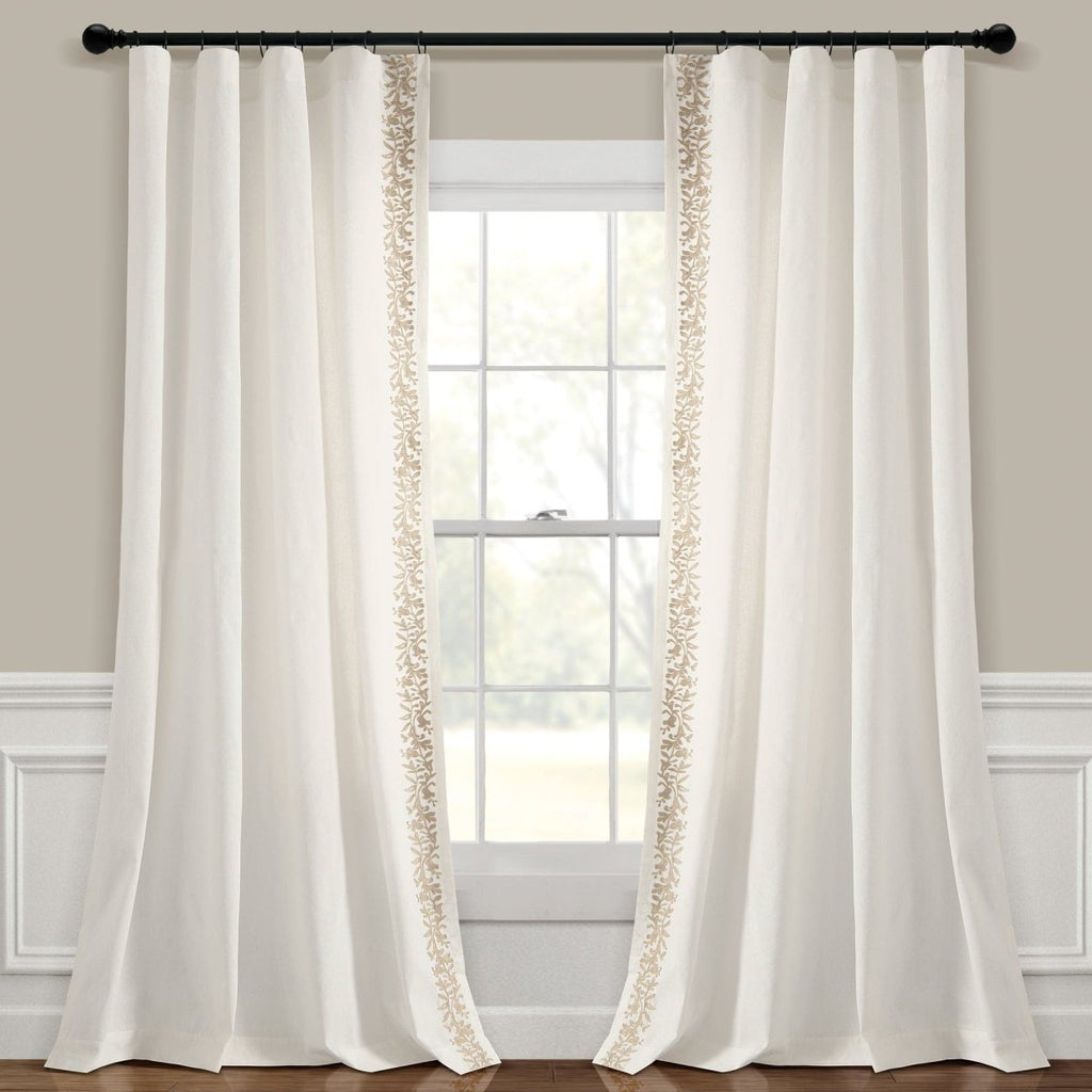 Curtains play a big role in the ambiance of a room. Design your warm and inviting space with this Luxury Modern Flower Linen Like Embroidery Border Window Curtain Panel. Made of high-quality material with a linen look, this curtain design captivates with its elegant style and textured trim. The border offers a modern spin on a traditional style that is perfect for any home.