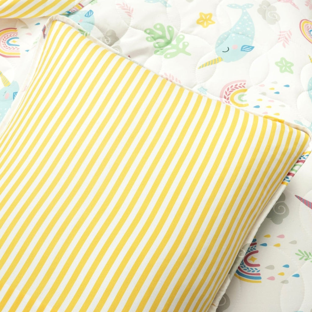Bring waves of color and coastal charm to your child’s room with this whimsical Narwhal Quilt Set. Featuring adorable narwhals and coral accents, this bedding turns bedtime into an ocean adventure. The wavy quilt stitching adds soft texture, while the striped reverse offers a second stylish look. Made for comfort and creativity, this oversized quilt keeps little dreamers cozy year-round. Available in Twin and Full/Queen sizes, this whimsical quilt comes with one or two matching shams, depending on the size you choose. STANDARD 100 by OEKO-TEX® certified, it’s crafted with care for a look and feel you’ll both love.