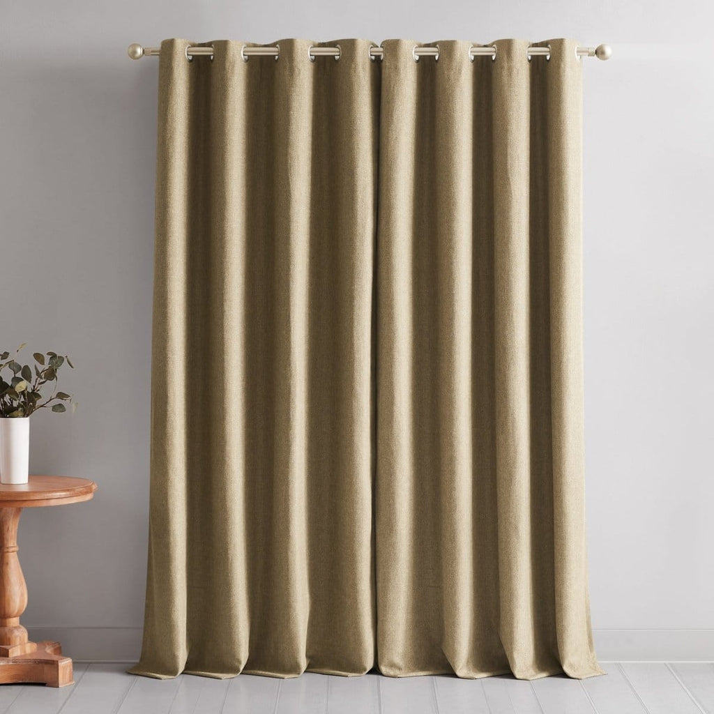 Enjoy a peacefully rest when you add these solid color blackout curtains to your space. Their simple yet classic design allows for endless styling options in any room of the home. These 100% blackout panels provide maximum privacy and are energy efficient: blocking out sunlight, reducing noise, and regulating room temperature. Sold as 2 window panels, each measuring 52 inches wide. Easy to install with the metal grommets measuring 1.65" in diameter, allowing you to easily slide your curtain rod through them. Machine washable for easy care.