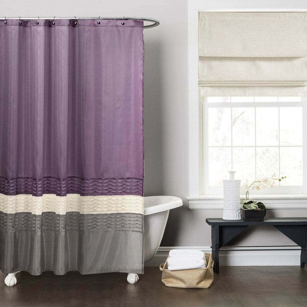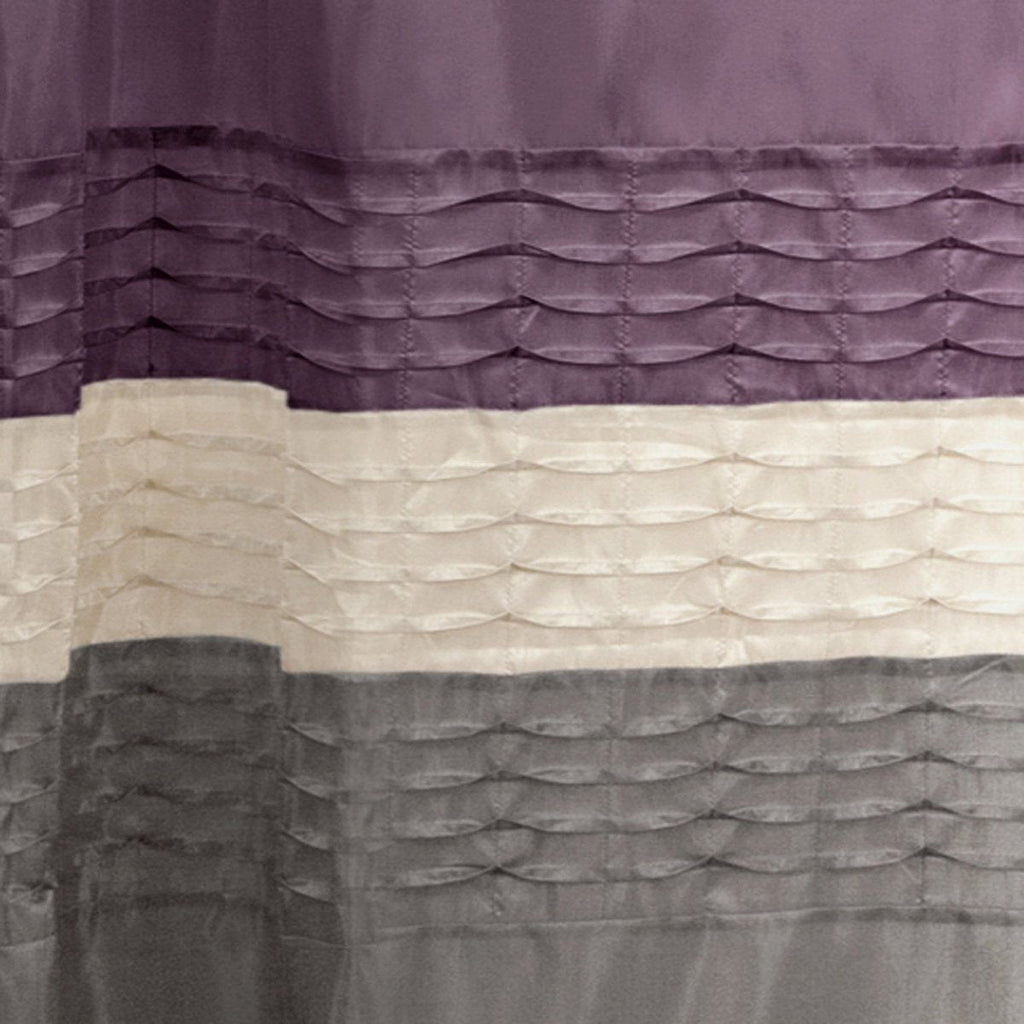 This elegant shower curtain turns an ordinary bathroom into a really special place. Fabricated with Faux Silk, the surface comes alive with pieced fabrics of three colors which are complemented with a pleated design running the width of the curtain. The Mia Shower Curtain is truly a classic!