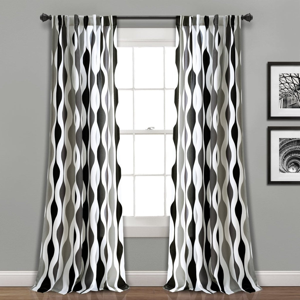This style is currently available in your choice of seven color combinations. The Mid Century Geo Light Filtering Window Curtain Panel Set is sold by the pair, so you will receive two panels with each order. Each panel measures 52 inches wide in your choice of 63-inch, 84-inch, 95-inch or 108-inch length (some colors may not be available in all sizes).