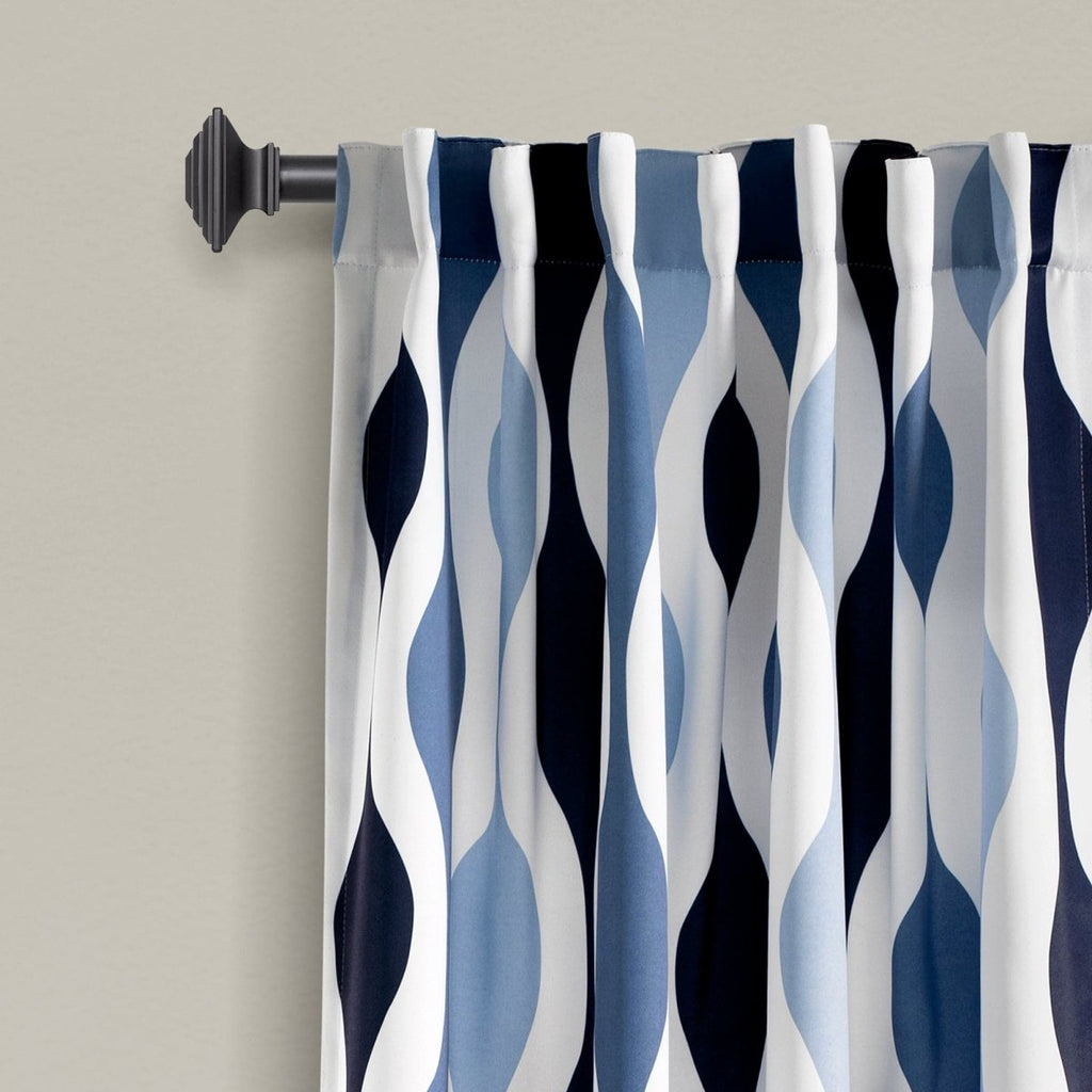 This Mid Century Geo Light Filtering Window Curtain Panel Set is made with a three-inch back tab rod pocket, meaning you have three options to hang these panels. You can slide the curtain rod through the rod pocket, hang the panels from the rod with clip rings, or hang the panels with the back tabs.