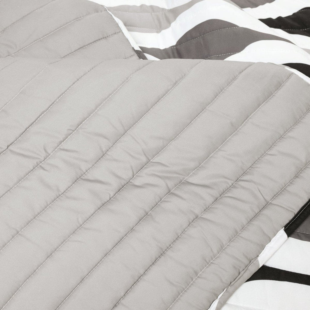 If you are embarking on a bedroom makeover, this Mid Century Geo Reversible Quilt 3 Piece Set will lay the foundation for a bold and exciting design. Each piece of this quilt set is decorated with this retro pattern of wavy colors.