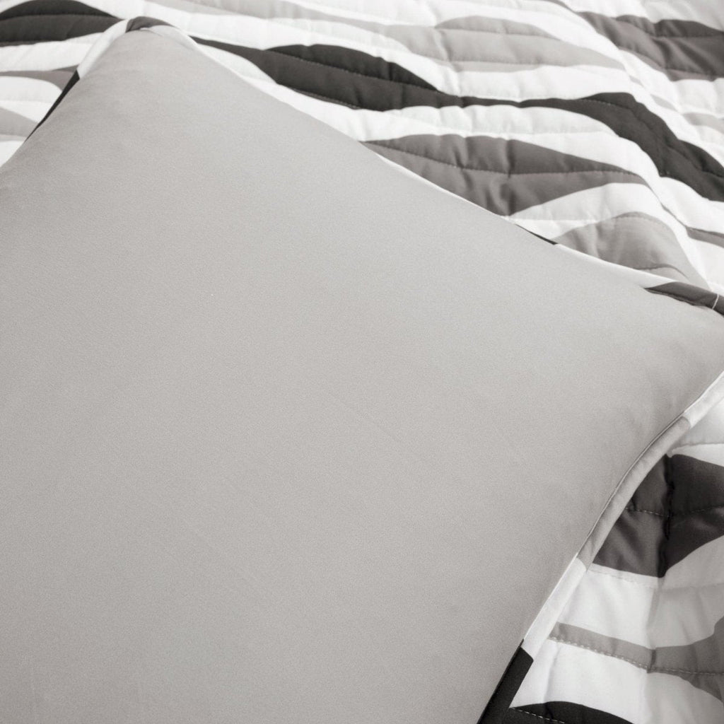 The front side of this Mid Century Geo Reversible Quilt 3 Piece Set will add plenty of energy to your space and is definitely an eye-catching centerpiece. Because it's reversible, you can also tone down the look as often as you like simply by flipping the quilt and shams over to the other side. The reverse is a much more subtle solid color design with quilting details.