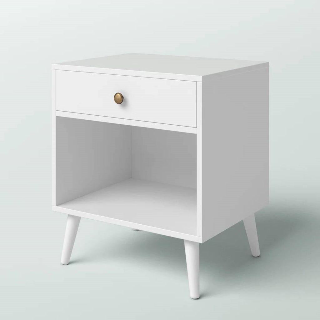 - Mid-Century Modern Bedroom 1-Drawer Nightstand End Table in White Wood Finish