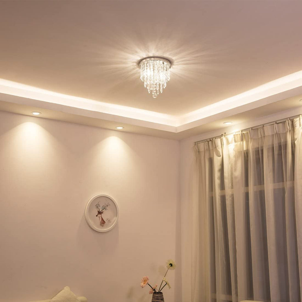 Transform small spaces with a twinkling centerpiece that adds luxury without crowding your ceiling. The Mini Crystal Chandelier Flush Mount Ceiling Light delivers a refined glow for rooms 5–8㎡, turning bedrooms, hallways, or entryways into a bright, inviting space with a touch of glamour.