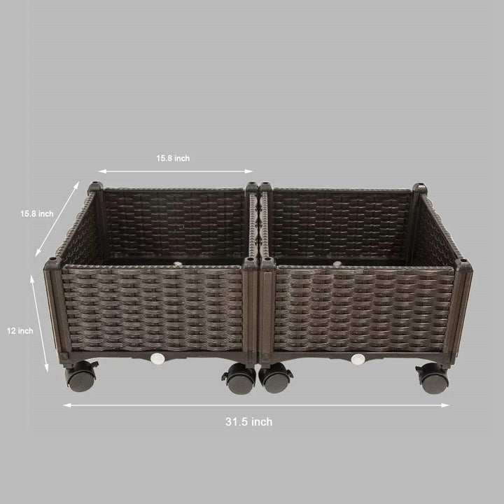 - Modern 2-Piece Indoor Outdoor Raised Garden Planter Box on Wheels in PP Rattan