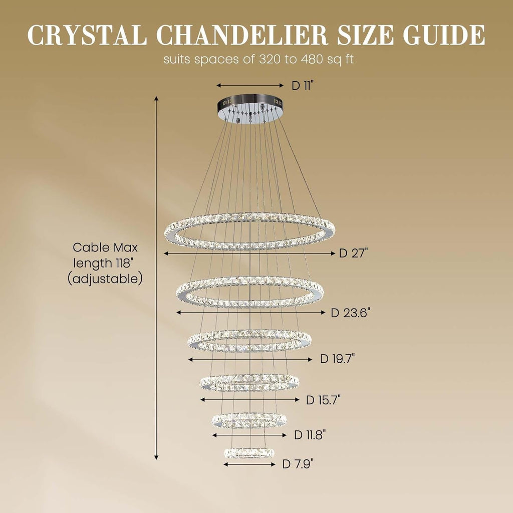 - Six-ring modular design with sizes D8"–D12"–D16"–D20"–D24"–D28" offers versatile layouts. Hang as a single ring or combine rings to suit your ceiling height and space—ideal for high ceilings, dining tables, kitchen islands, living rooms, and grand entrances.