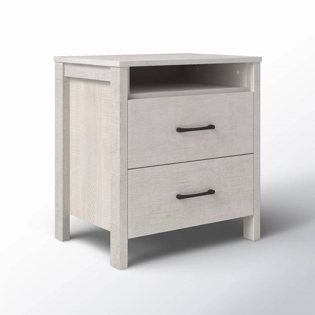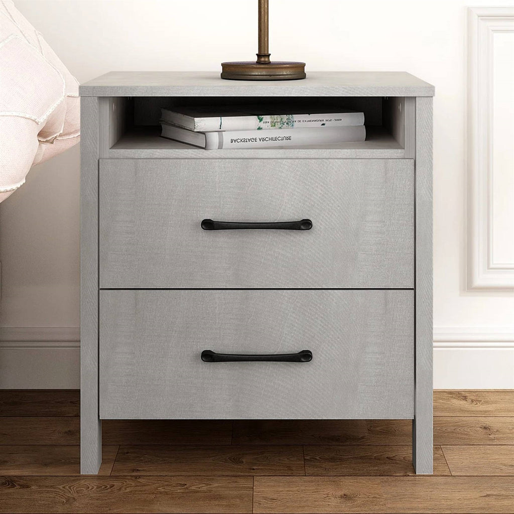 - Modern Farmhouse Bedroom 2-Drawer Bedside Table Nightstand in Grey Wood Finish