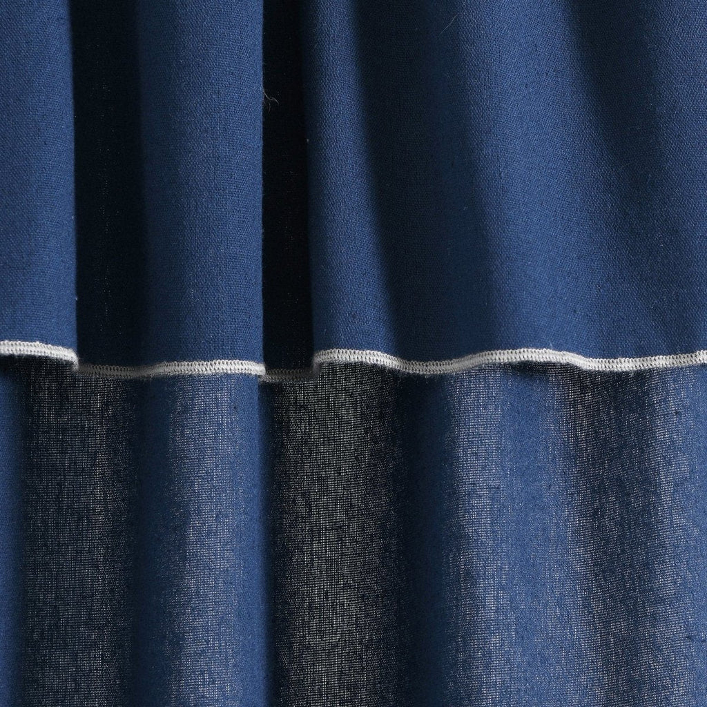 The Modern Faux Linen Embroidered Edge With Attached Valance Window Curtain Panel Set is sold by the pair, so you will get two panels in each pack. The curtain measures 84 inches long and 52 inches wide. It is currently available in five color options: blue, light gray, light linen, dark linen and navy.