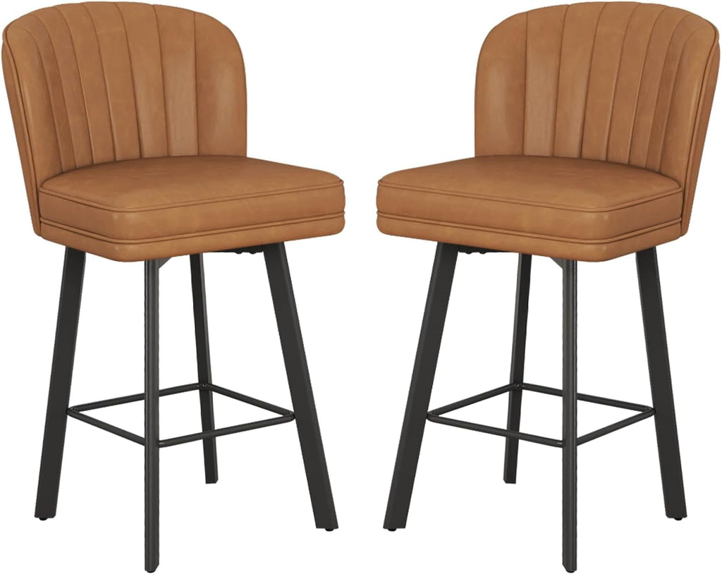 Introducing our Modern Swivel Counter Height Bar Stools Set of Two, the perfect blend of style and functionality for your Home & Kitchen or Game & Recreation Room Furniture. These bar stools feature a chic shell element backrest that adds a touch of elegance, making them a fantastic addition to any interior décor. The design harmoniously combines modern aesthetics with retro elements, ensuring they fit seamlessly in your kitchen or home bar.
