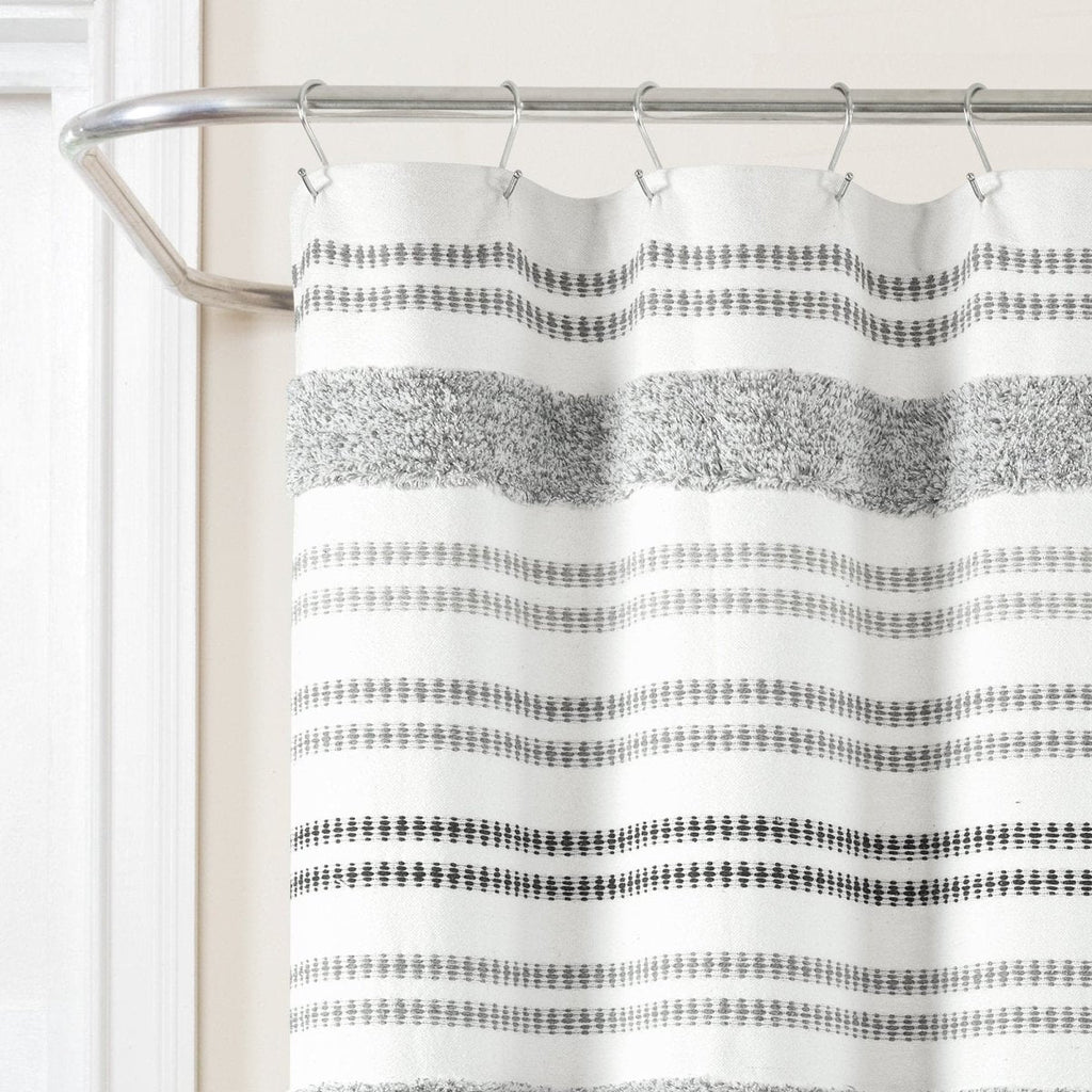 Whether you're looking to update your current style or are just starting to decorate, this Modern Tufted Stripe Yarn Dyed Recycled Cotton Shower Curtain is perfect for adding in some of your personality. The striped pattern will fit seamlessly into many design themes for your primary, guest or teenager's bathroom.