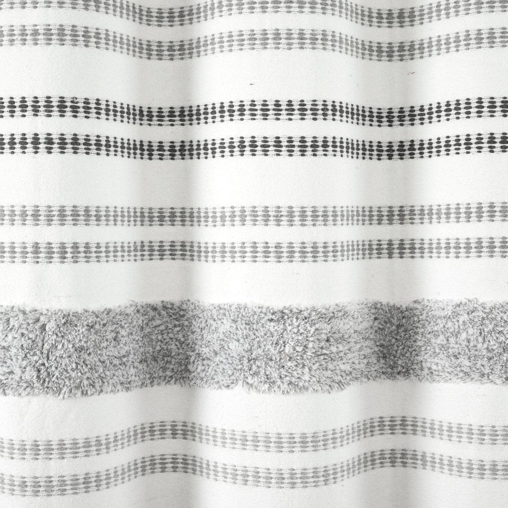 Update your primary or guest bathroom look with this cozy patterned shower curtain. Tufted with textured stripes and yarn dyed recycled cotton, this Modern Tufted Stripe Yarn Dyed Recycled Cotton Blend Shower Curtain brings a comfortable boho vibe to your space to help make every morning a relaxing one.