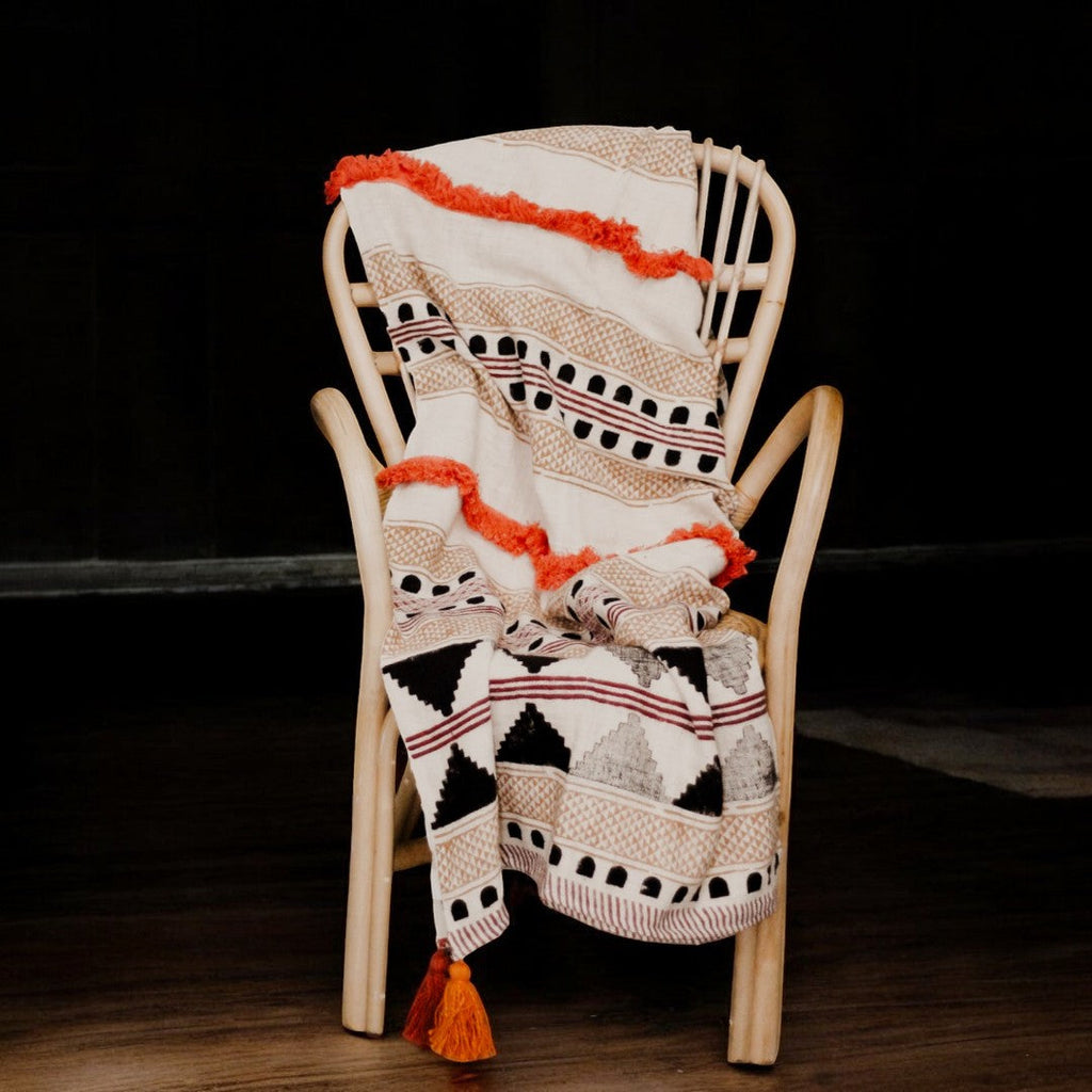 Bring warmth, texture, and a touch of soulful artistry to your home with our multicolor boho cotton tassel throw blanket. Made by skilled artisans using traditional wooden looms, each blanket tells a story of craft, care, and cultural heritage.