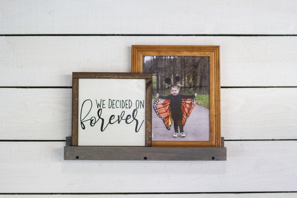 PLEASE NOTE- Hand crafted in NY with new pine. Each piece is custom made from new wood. Wood grain variations and/or knots are to be expected and will vary from the picture shown. Due to the character of wood, sometimes knots or imperfections are present. We feel that slight imperfections help add to the character of our handmade items. Back is unstained. *This listing is for an empty shelf. Decorations not included* The natural variations in wood products include, but are not limited to... wood grain pattern, color variations, hairline cracks, small dents or scratches, knots, and/or mineral streaks.