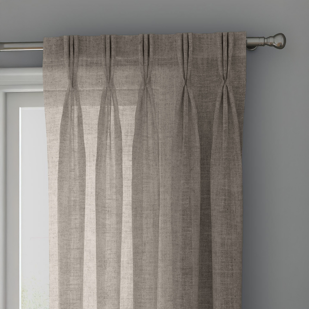 Embrace the understated elegance of these natural linen sheer curtains. Crafted from 100% pure GOTS certified linen, these curtains offer a timeless and sophisticated touch to any room. The triple pinch pleat design adds a tailored finish, while the sheer fabric allows soft light to filter through, creating a warm and inviting atmosphere. Perfect for bedrooms, living rooms, or adding a touch of effortless chic to any space.