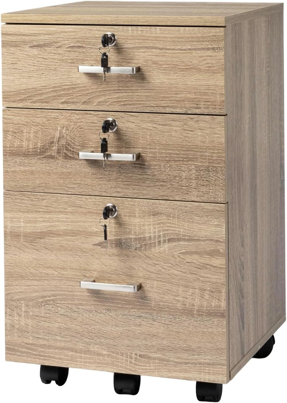 Transform your workspace with secure, mobile under-desk storage that frees up desk space and brings order to your day. The 3-Drawer File Cabinet with Lock in oak blends durable construction with a refined finish, so you can access letter-sized files quickly and keep confidential documents private.