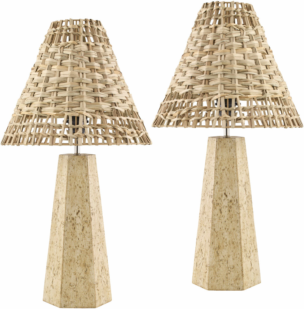 Material: Body: Travertine,Shade (Outside): Rattan,Shade (Inside): Rattan |