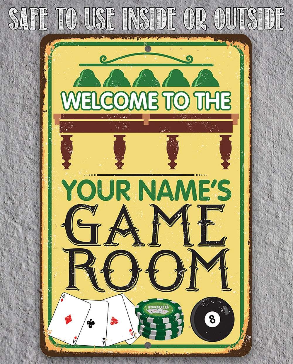 Personalized Metal Sign - Game Room Play Nice - Durable- 8" x 12" or 12" x 18" Use Indoor/Outdoor-Great Casino, Man Cave, or Game Room Decor