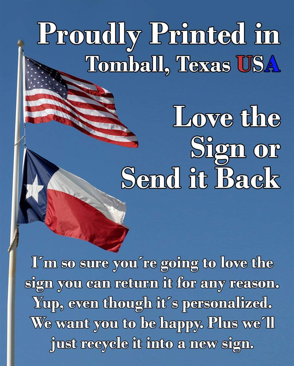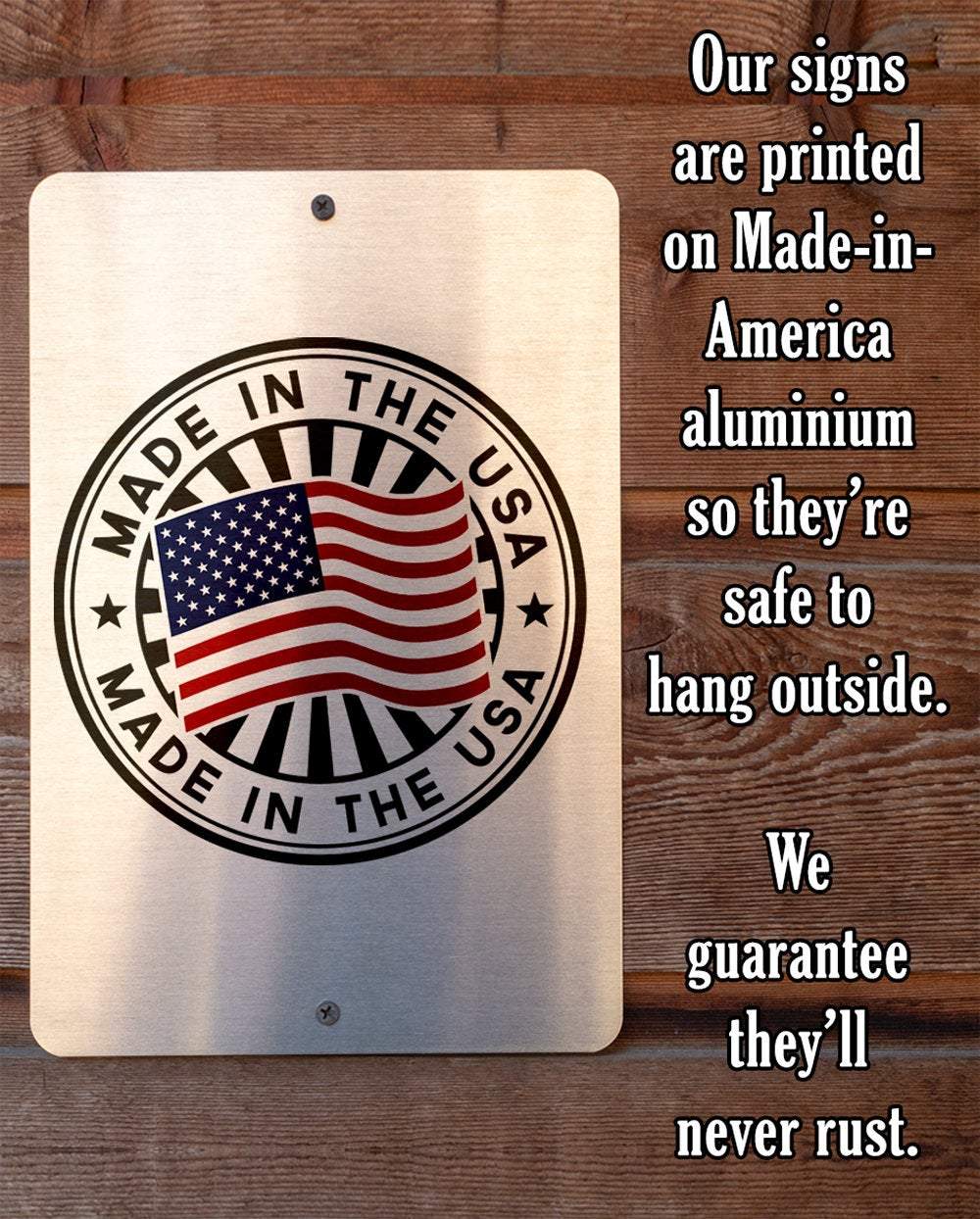 Durable - 8" x 12" or 12" x 18" Aluminum metal sign printed with epoxy ink so you can proudly hang it inside or outside