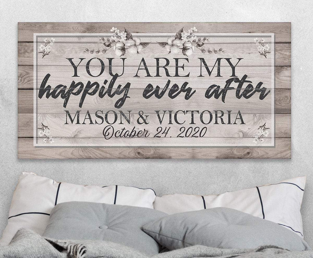 Personalized- Happily Ever After-Large Canvas Wall Art(Not Printed on Wood) - Stretched on a Wood Frame